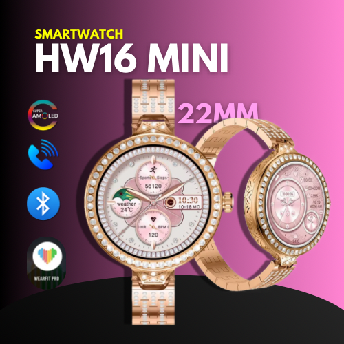 El Smartwatch HW16 Mini en color rosa combina diseño elegante con funcionalidades inteligentes para acompañarte en todo momento. Su tamaño mini lo hace cómodo y discreto, ideal para cualquier ocasión, mientras que sus prestaciones te mantienen conectada y saludable con un toque de estilo.